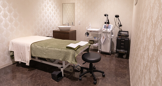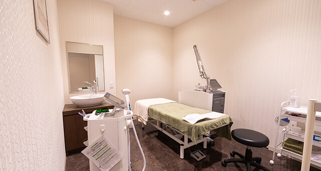 各施術に対応した治療毎の専用レーザー室、メディカルエステルームにて施術いたします。