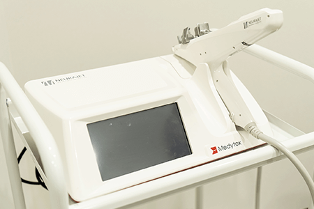 水光注射は、専用の機器を用いてヒアルロン酸や美肌成分を肌の浅い層に均一に注入する治療です。 韓国で生まれた施術で、「肌にみずみずしいツヤを与える」ことからその名がつきました。 ※当院の水光注射の機器は韓国製のNeurajet (ニューラジェット)です。