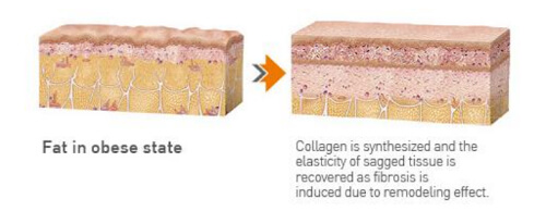 脂肪細胞の除去後、皮下層のリモデリング効果によって線維化及びコラーゲン合成を誘導します。