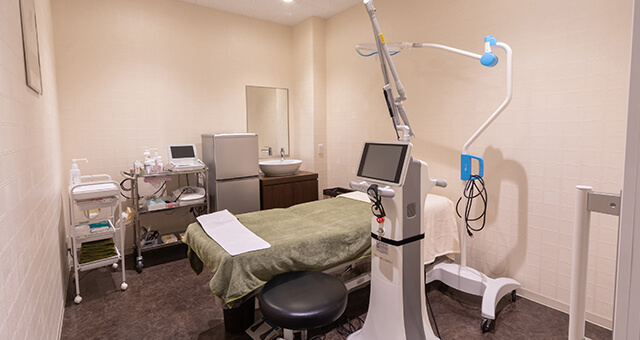 各施術に対応した治療毎の専用レーザー室、メディカルエステルームにて施術いたします。
